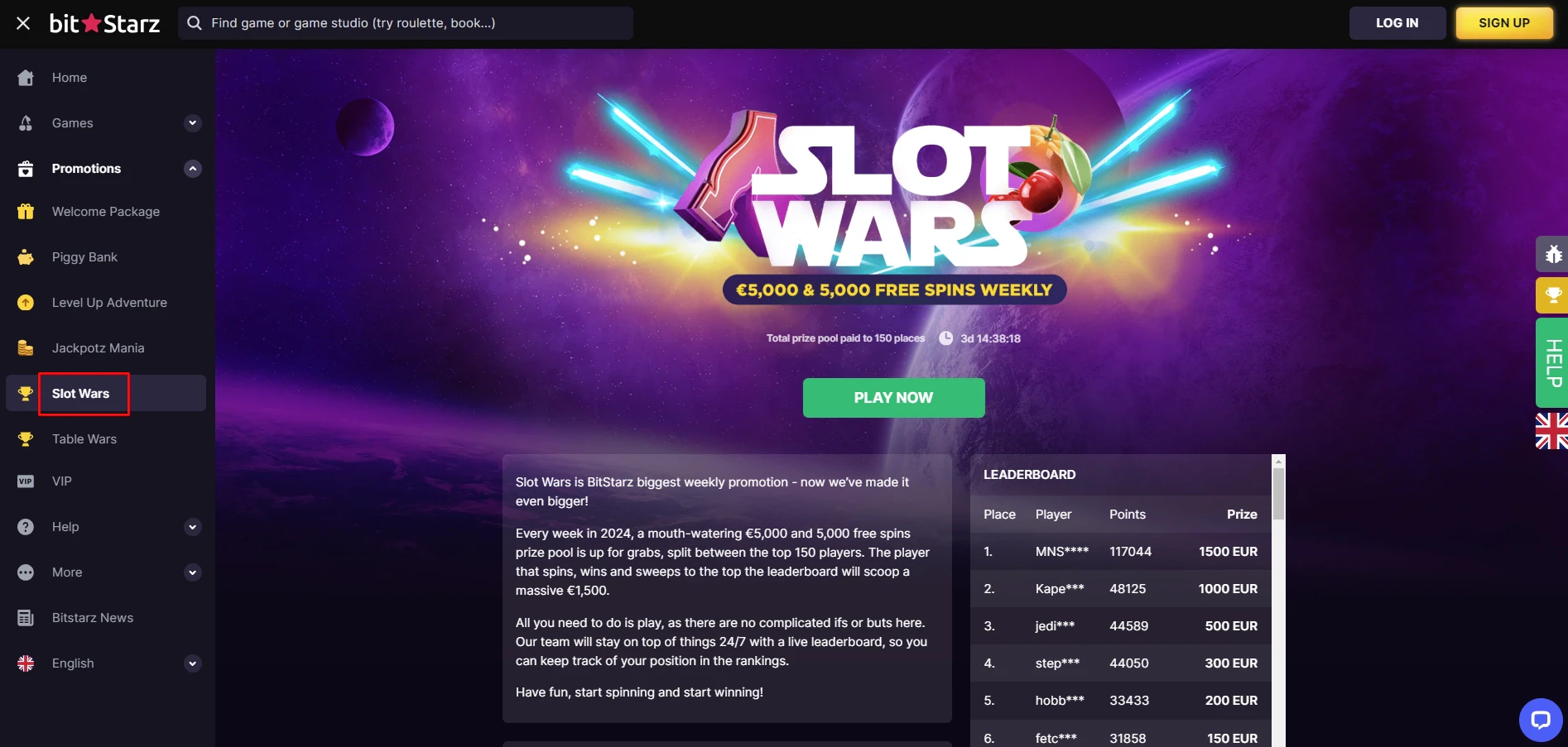 The first 150 players who qualify for this tournament will be eligible for a share of €5,000 and 5,000 free spins!
