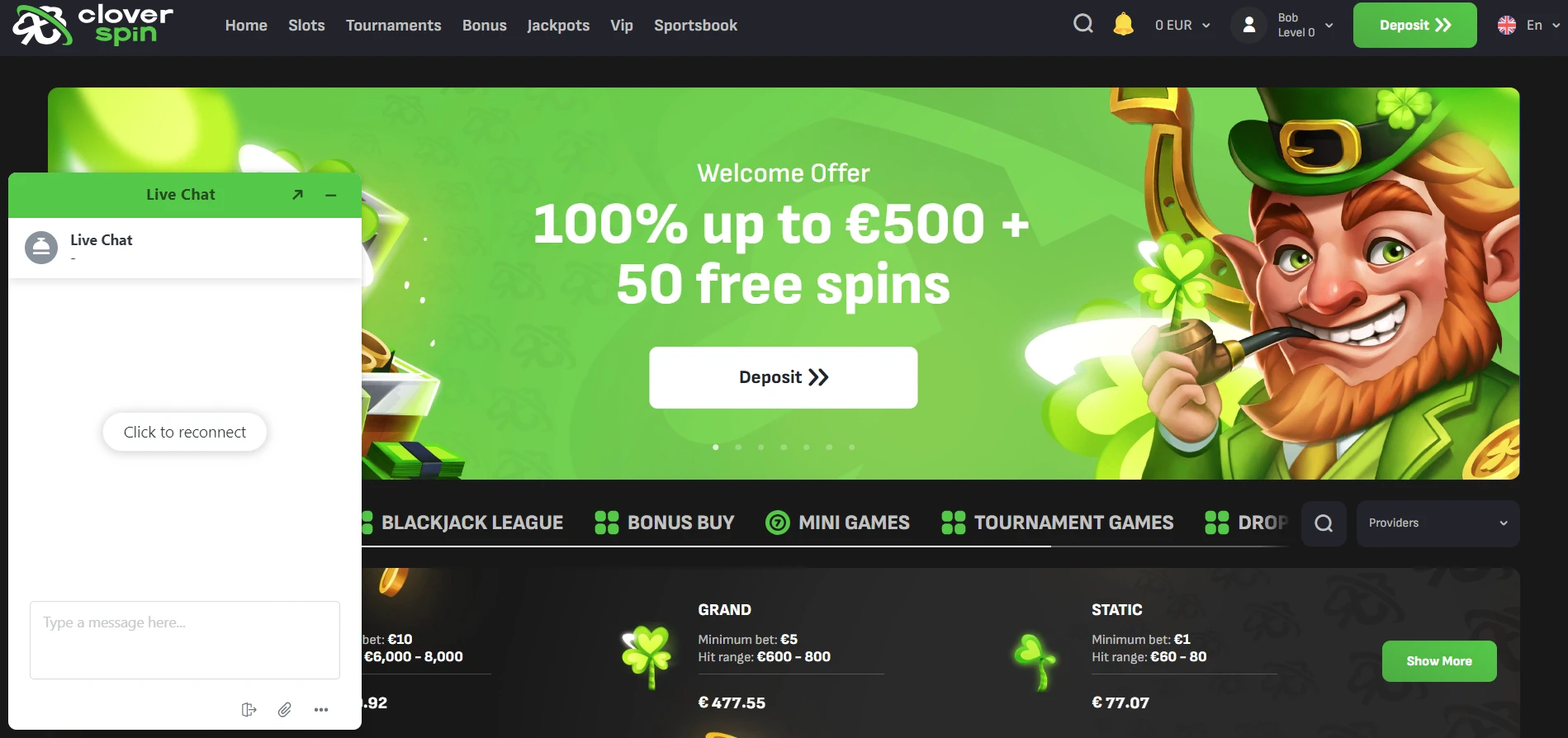 More than 5,000 games await you at Cloverspin, including a wide variety of exceptional software providers at your disposal.