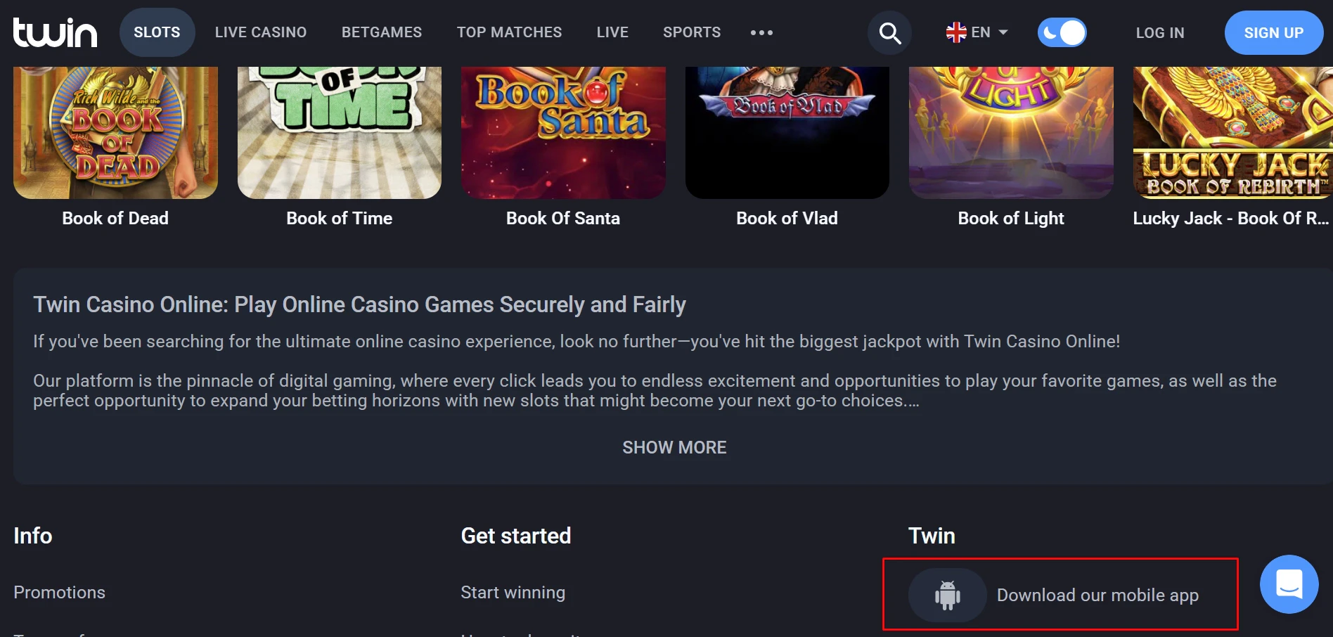 Unfortunately, Twin only has a mobile app available for Android users. You will be able to download it from the google play store, or even by following the link on the casino's website.
