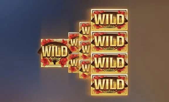 The grid consists of 5 reels of 4 symbols that can split to increase their number. There are indeed several features during the base game. The Geisha Wild can appear on the 3rd reel, it always shifts to occupy the whole reel. This is the Nudge feature, for each move +1 is added to a win multiplier.