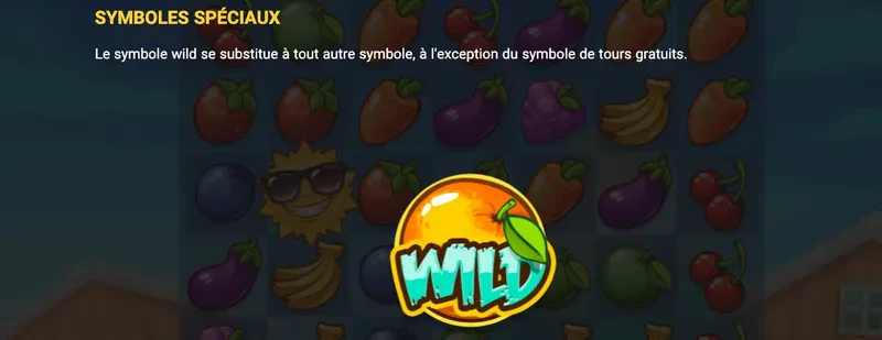 Hop'n'Pop is a slot machine with several different symbols. First of all you have the wild symbol, represented by an orange. This symbol connects with all the other symbols in the slot. It takes the value of the symbol it connects with.