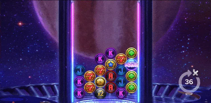 Contrary to the base game where the grid expands as you connect symbols, as a bonus the grid is at its maximum height, as you can see in the following picture.