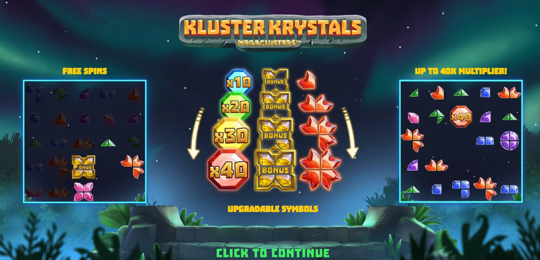 MegaClusters™ technology is patented by Big Time Gaming who have collaborated with Relax Gaming to bring you Kluster Krystals Megaclusters™.