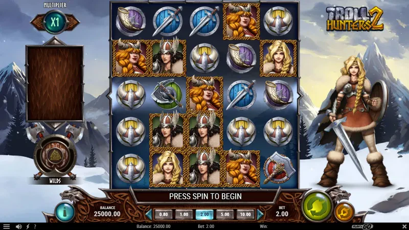 Troll Hunters 2 is a 5x5 grid slot machine using cascade technology. It is the second part of the Troll Hunters series, one of Play 'n Go's first successful slot machines. The potential of Troll Hunters 2 is classic to most other Play 'n Go slots. With an RTP of 96.5%, you can expect a maximum payout at 5,000 times your bet.