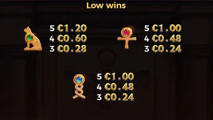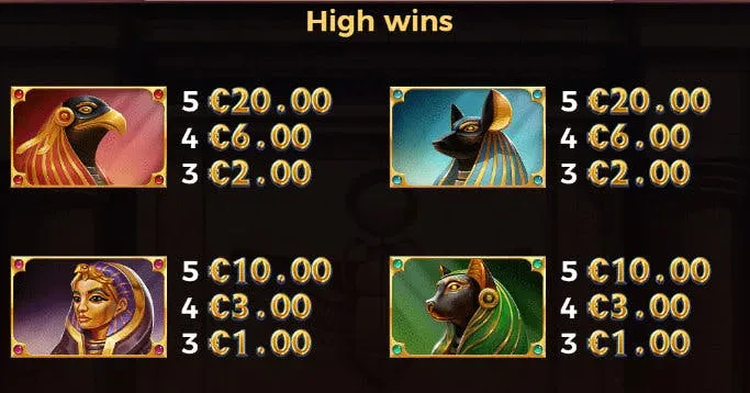 the Goddesses Isis and Bastet (pay x10 for 5 identical symbols).