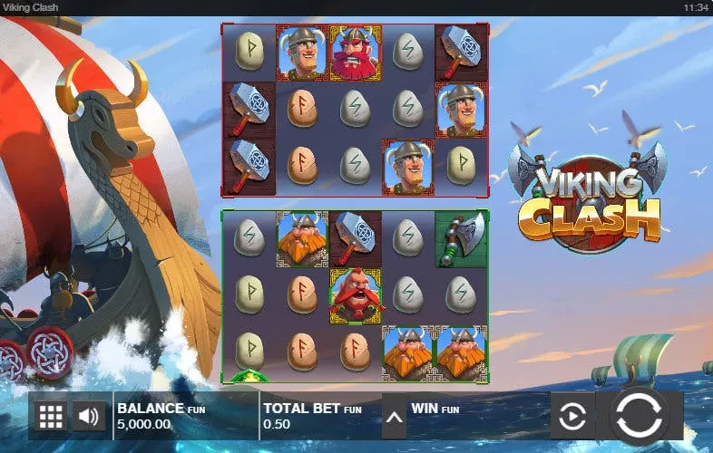 Viking Clash is a popular online casino slot machine. It is published by the provider Push Gaming since August 2018. The player is immersed in a northern universe with a confrontation between two Viking tribes, these valiant Scandinavian warriors explorers and pirates of the North Seas.